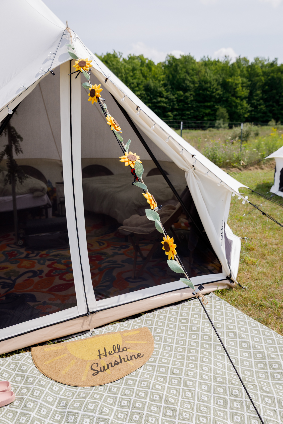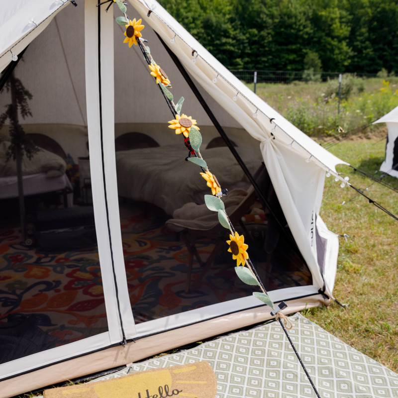 - All tents come fully furnished with decor, rugs, ambient lighting, pillows, blankets, and 6" memory foam mattresses on platforms. (We are not skipping comfort here!)